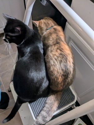 Meowie (black M), Honey (tabby F)